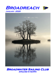 Broadreach is Broadwater Sailing Club's twice yearly magazine. You can contact the Broadreach Editor by email at the address given on the contact page. The magazine is available in Adobe Acrobat pdf format. The latest version can also accessed from "Broadreach" on the quick links menu.